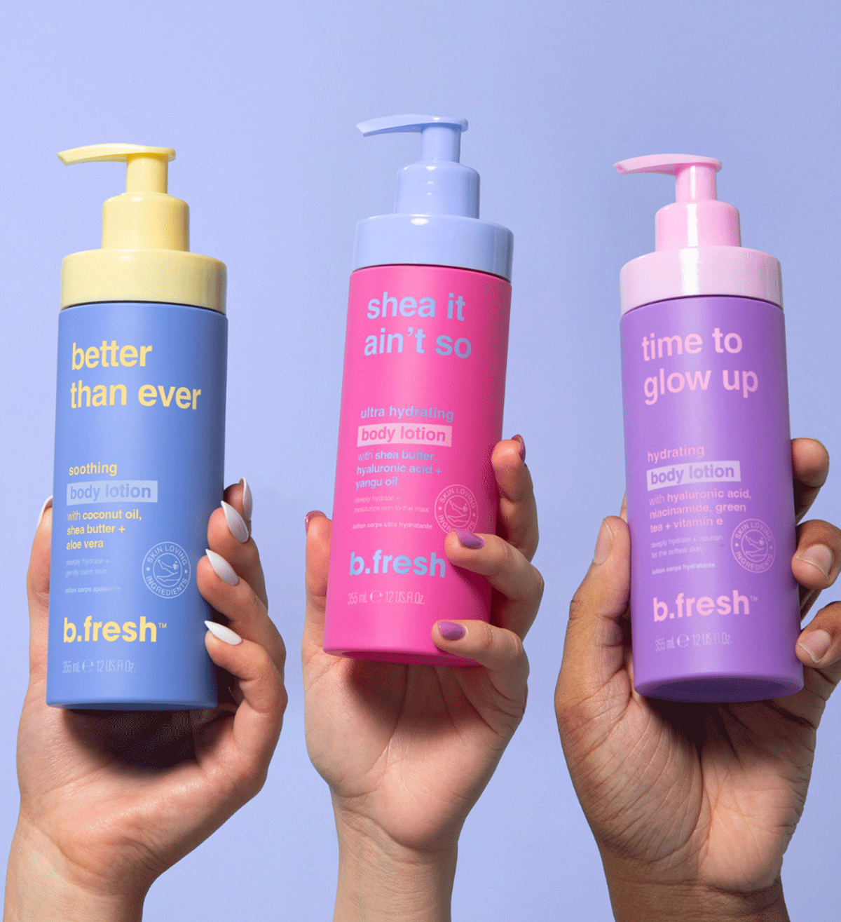 say hello to b.fresh. keep your skin feeling fresh AF + oh-so-nourished with the best skin conditioning ingredients from momma nature. we’re all about bringing skin care to your bod. b.fresh with bodycare products jam packed with the best skin lovin’ ingredients + natural scents your hot bod has ever experienced.